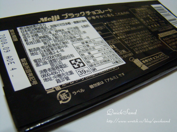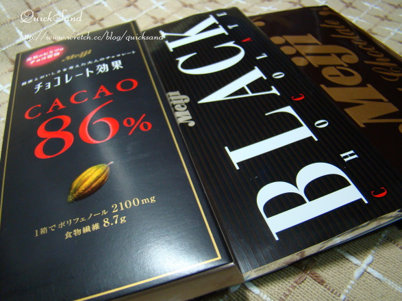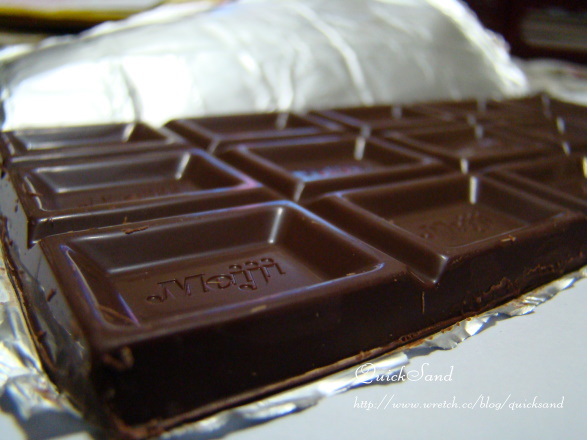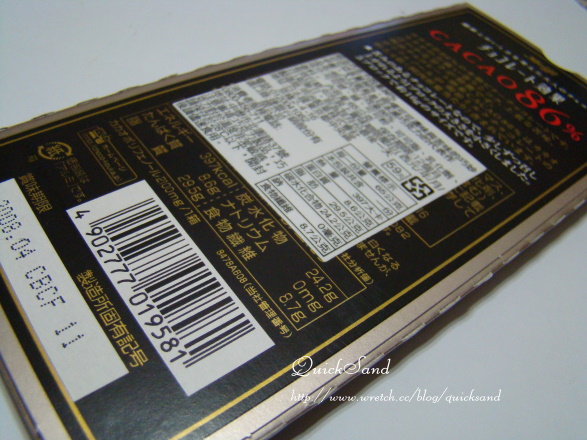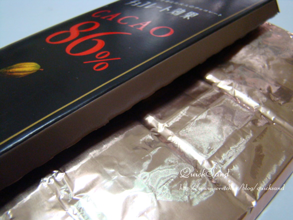 雖然可可含量高達86%,可是看起來色澤沒差多少,不過吃起來真是有夠澀阿!不知道是不是我不習慣吃濃度這麼高的巧克力,還是明治的黑巧克力做的都比較澀,吃起來口中的感覺不是很舒服。