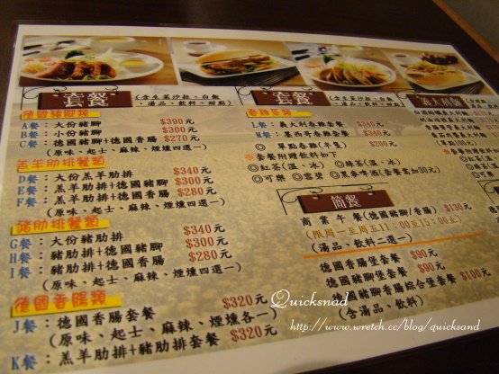 他們供應的餐點很單純,以豬腳和德國香腸為主,各種套餐就是以這兩樣主食作變化,價錢算普通,而且不需要再多收服務費。