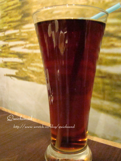 很奇妙的熱紅茶,原本我們以為我們要的是熱紅茶,應該會裝在瓷杯裡,沒想到他是用玻璃杯裝給我們還插入吸管,挺出乎我們的意料。不過紅茶很香,甜而不膩,喝起來很舒服。