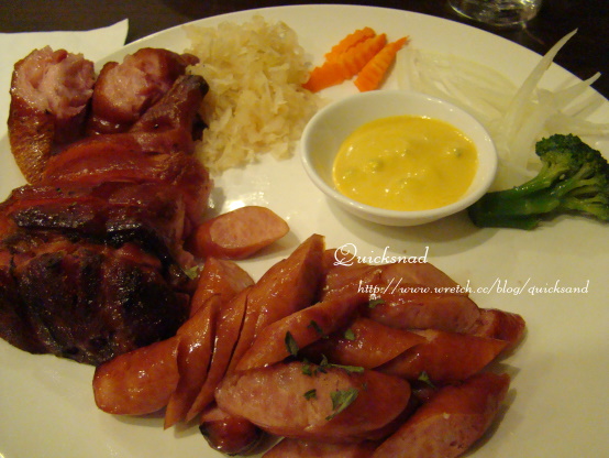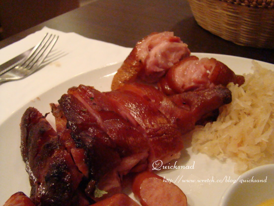 接下來就是我的主菜:德國豬腳+德國香腸。他們的酸菜很好吃,洋蔥更是鮮甜脆,跟豬腳和香腸搭配在一起吃解了不少膩。
