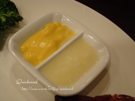 女王的沾醬有黃芥茉醬和檸檬汁,檸檬汁因為是為了解豬肋排的油膩,而我的就只有黃芥茉醬,不過因為我喜歡吃原味,所以幾乎沒有沾醬。