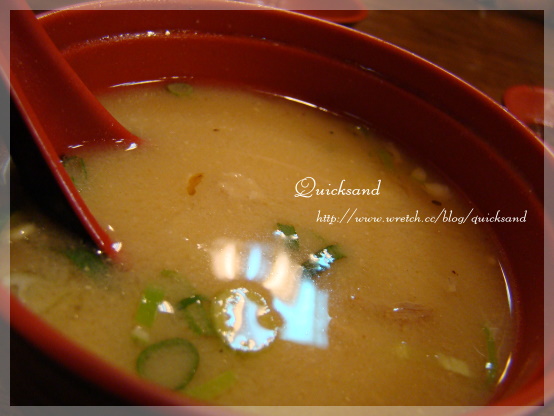 我生魚蓋飯附得味噌湯,味道很棒,味噌很濃,豚骨的湯頭也很鮮甜,不用錢的湯就已經非常好喝。
