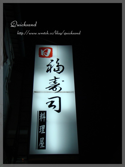 來台南這麼多次,吃福壽司的次數也很多,不過因為在下很懶,喜歡在家裡吃,所以每次都是老游出去買回來,從來沒有在店裡面吃過。老游也曾經多次要求想到店裡面吃,因為有些餐點是無法外帶的,可是每次要吃福壽司的時候都剛好是我懶病發作的時候,也就一直沒有成行。直到這次去台南,跨年夜依舊沒事幹,就於去擠在一起跟別人一起倒數這種事情我還是一點興趣都沒有,兩個人跑到書局去逛逛順便買了下學期上課要用的工具書,老游提議去福壽司店裡吃飯,既然人都已經在外面了,就順便去店裡面吃吃再回家,也讓我們第一次在福壽司店裡吃飯成行。